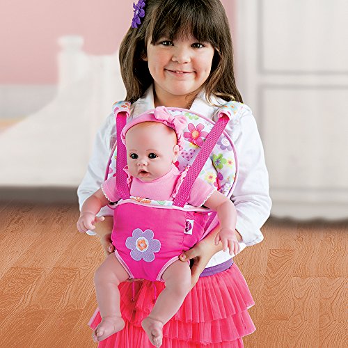 This bright and fun floral baby carrier is perfect for mini mommies on the go! This is dual purpose carrier allows little ones to tote their dolls in the front or back! It features two adjustable vertical straps and adrawstring in the back to accommodate various sizes of dolls. Adora's Baby Carrier Snuggle easily fits most 13" - 20" Dolls!