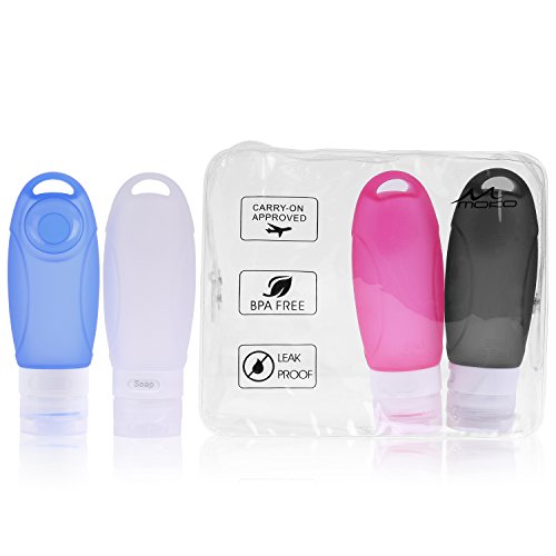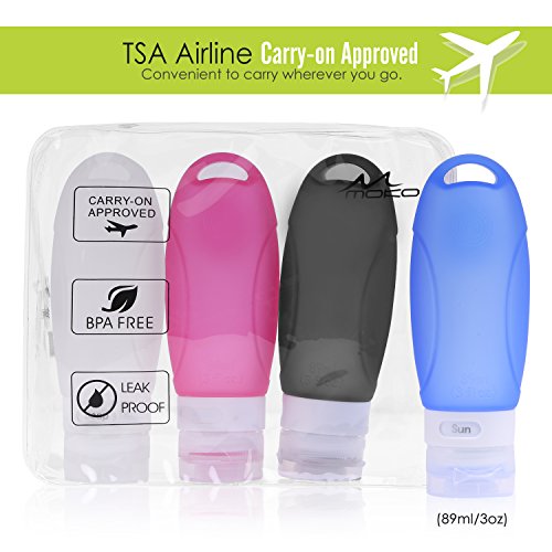-. Title : MoKo Travel Bottle Set, [4 Pack] Leak Proof Refillable Squeezable Silicone Travel Bottles with Suction Cup for Shampoo, Conditioner and All Toiletries, BPA Free, FDA Approved, 3.1 oz(89ml)