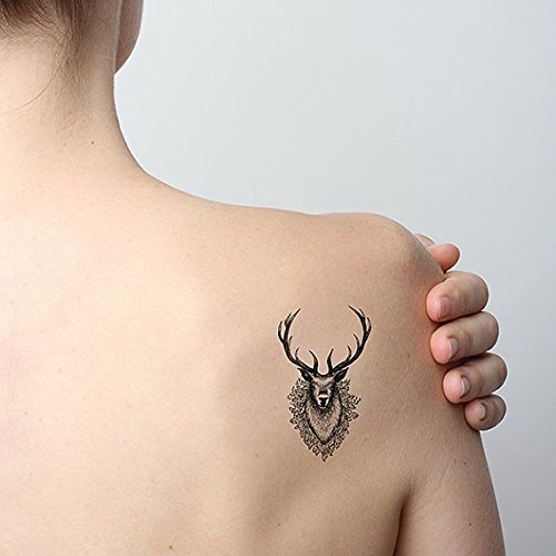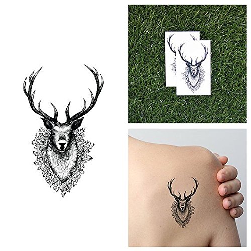 -. Title : Tattify Deer Head Temporary Tattoo - Stag Along (Set of 2) - Other Styles Available and Fashionable Temporary Tattoos - Tattoos are long lasting and Waterproof