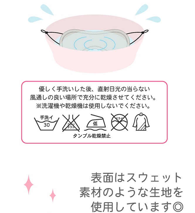 | 素材・成分 | ポリエステル・綿/コラーゲン、ヒアルロン酸、ヒオウエキス |