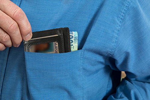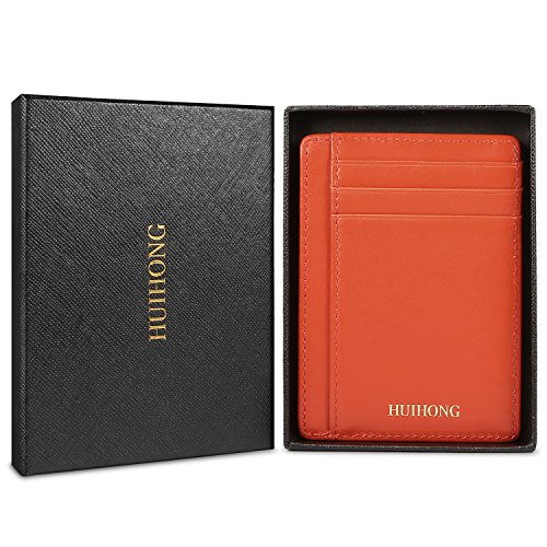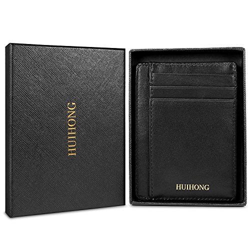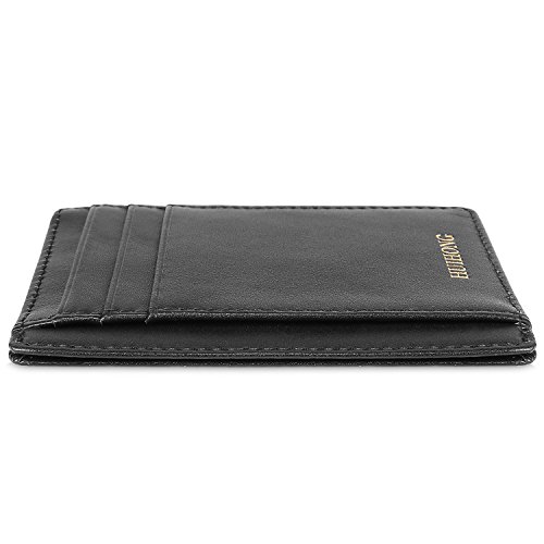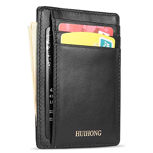 Binding : Apparel Product Description HUIHONG New Arrival : HUIHONG Super Slim Genuine Leather Unisex Front Pocket Wallet Thin Card Holder Case RFID Blocking. This is the reatest thin minimalist pocket wallet. It has 5 card slots, 1 ID window, 1 Larger Card/Money/Receipt Pocket - Top Center Access, you can easily put all kinds of cards and money in and easily take out. This wallet will not bulge in your front pocket, you feel soft and practical. Ultra Slim Professional credit card or Wallet, Compact Design for Front or Back Pocket Wear. You will feel comfortable to take it even if long time sitting or driving. Slim RFID Blocking Wallet: Can Secures your credit card and other RFID-chipped cards, ID, Passport etc., protects your personal information from being stolen. Blocking all RFID scanners and readers. With High Quality Genuine Leather and Good stitching, this slim wallet is made of Genuine Leather, soft and feel good. it is durable 0