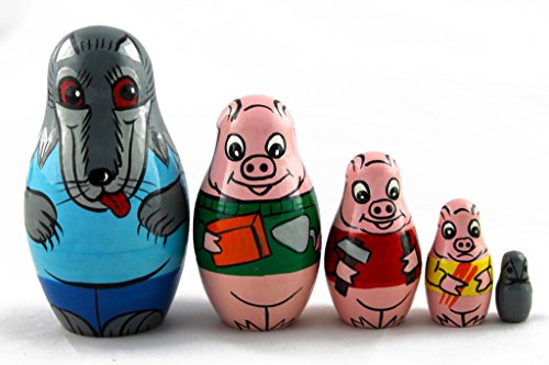 -. Title : Matryoshka Matrioska Babuska Russian Nesting Wooden Doll Three Little Pigs Fairy Tale Matreshka Babooshka 5 Pc Stacking Hand Painting Matriosjka Matrioska Matreshka Matrjoska Matroeska