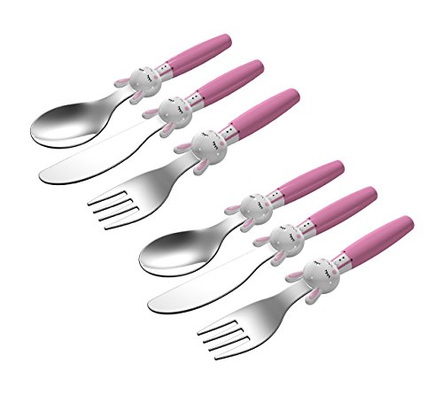 Studio : Exerz Limited Publisher : Exerz Limited Binding : Kitchen Product Description Exzact Stainless Steel 6 PCS Children Flatware / Cutlery Set; Including: 2 x Fork (6.3-inch / 16 cm), 2 x Knife (6.9-inch / 17.5 cm), 2 x Dinner Spoon (6.1-inch / 15.5 cm); Mirror Polished Premium Stainless Steel;Dishwasher Safe and durable;Rabbit design handles and easily for children to hold "Blade under 3 inches" 0