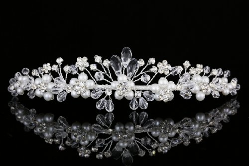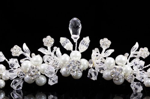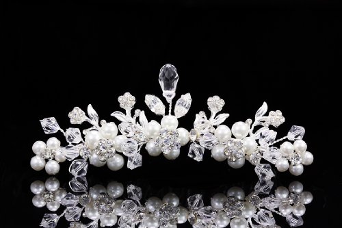 Handcrafted with rhinestone crystals, faux pearl and clear crystal beads in silver plated settings.