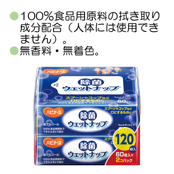 ●100%食品用原料でできたふきとり成分の除菌※用のウェットティシュです。