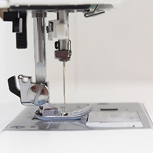 -. Feature : Top loading full rotary hook bobbin | 60 built-in stitches | 6 one-step buttonholes | Manual thread tension control | Built-in needle threader | Easy set bobbins | Easy bobbin winder / Snap-on presser feet | Needle up/down with down as default | 7-piece feed dog | Free arm | Drop feed | Start/stop button | Speed control slider | Locking stitch button / Automatic thread cutter | Easy reverse button | Auto-declutch bobbin winder | Extra high presser foot lift | Bright LED screen with easy navigation keys / Foot pressure adjustment | Maximum stitch width: 7mm | Maximum stitch length: 5mm / Bright LCD screen with easy navigation keys | Thread Cutter | Needle Threader | Included Extension Table