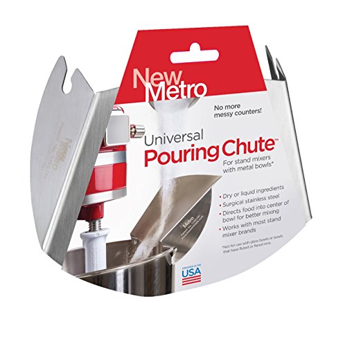 New Metro Design Universal Pouring Chute for Use with Stand Mixers with Metal Bowls, Stainless Steel