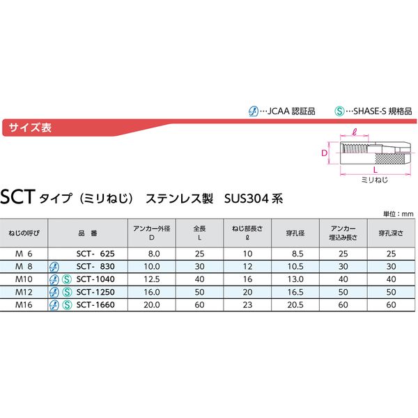 ●ねじの呼び:M8 全長:30mm ねじ部長さ:12mm 穿孔径:10.5mm アンカー 埋込み長さ:30mm 穿孔深さ:30mm アンカー外径:10mm