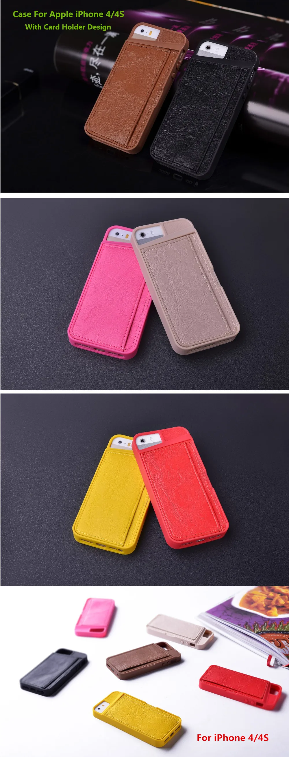 1)。製品名:高級電話ケースiphone用4 4 s tpuカバー付きカードホルダーデザイン携帯電話バッグケース用カバーアップルiphone4の4 s