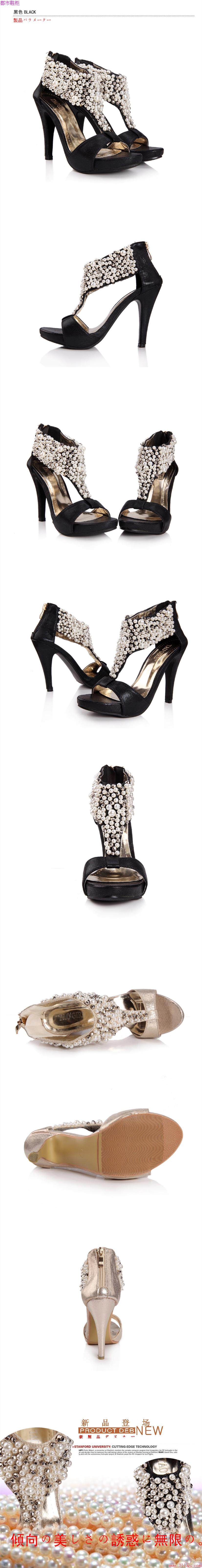 韩版珍珠防水台高跟凉鞋 细跟女鞋性感时尚夏季新款舒适鱼嘴单鞋
