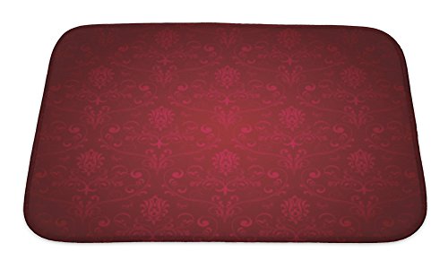 Gear New No Slip Microfiber Memory Foam Red Ornate Pattern Bath Rug Mat, 24" X 17"