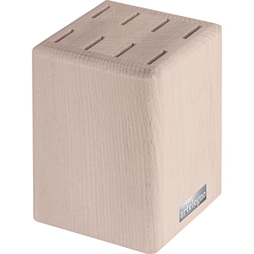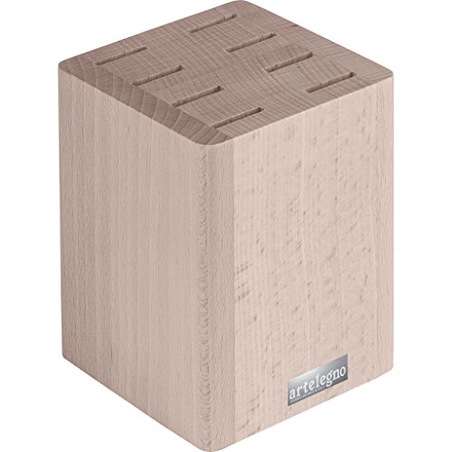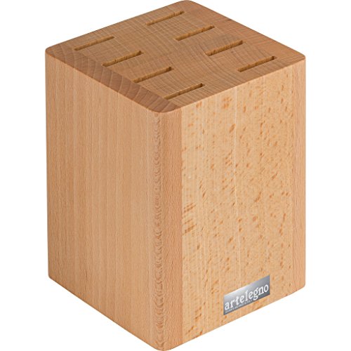 Artelegno Steak Knife Block Solid Beech Wood 8 Slot for Blades up to 5", Luxurious Italian Collection by Master Craftsmen Displays High-End Steak Knives Elegantly, Eco-friendly--Natural Finish