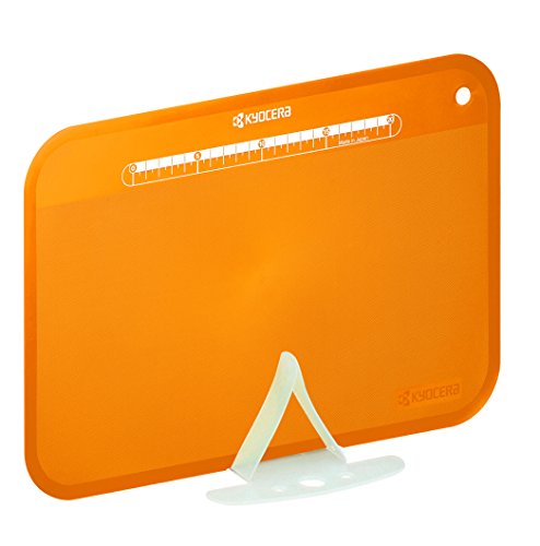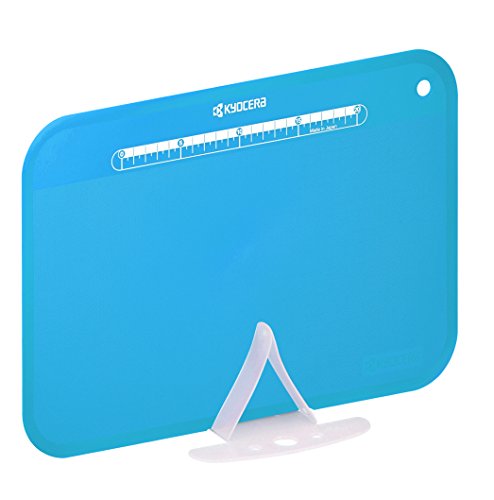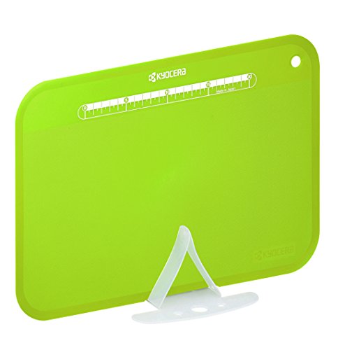 Kyocera presents a bright new collection of contemporary, lightweight Soft Color Cutting Mats. As the innovation leader in ceramic cutlery, Kyocera knows what it takes to create cutting mats that are highly practical and attractive. These thin, flexible cutting mats make transferring foods easy and they come in five bright colors. With blue, green, red, orange and yellow, there's sure to be a color to coordinate with your kitchen decor. Each mat features an imprinted ruler for accurate slicing and dicing. Lighter and more compact than traditional cutting boards, they feature a hole for easy hanging, or they can be stored flat. Mat measures 14.5"x 9.8" x 0.1" Inch and comes with drying stand.Feature