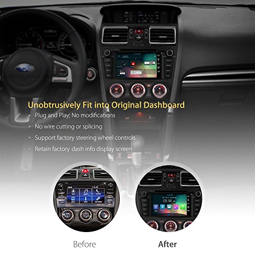 Fits 2014-2018 Subaru Forester; Android Operating System; Built-in Wi-Fi; Plug and Play; No modifications; No wire cutting or splicing; No extra interface or hardware required; Replaces both factory base radio and factory navigation radio;