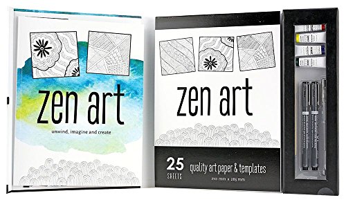 Unwind, imagine and create! Zen drawing is a relaxing way to relieve stress, develop and explore new ideas and get in touch with your inner self. Follow the step by step demonstrations, learn how to use drawing as a meditation tool and allow your creative energy to flow onto the page in beautiful patterns and designs. This Zen art kit includes 1 instruction book, 25 sheet art pad, 2 ink pens, 4 watercolor paint tubes, 1 paintbrush and 1 silver gel pen. Recommended for ages 8 and up.Feature