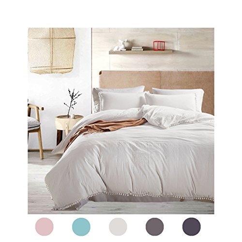 Specification: Type :Duvet Cover Set Number of Pieces : 3 Pieces bedding set Set Includes : (1)One Duvet Cover and(2) Pillow Cases. Fabric: 100% Microfiber Pattern: Solid Color Ball Fringe Bedding Suitable Season: All the Seasons Filling: No Wash Method: Machine Washable Hand Wash