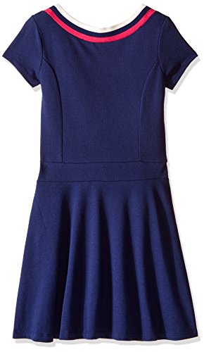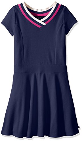 Tommy Hilfiger solid pique dress with striped rib collar.