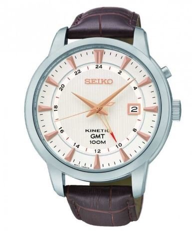 -. Title : Seiko SUN035P1 Men's Kinetic Gmt,Steel Case & Brown Leather,100m WR,SUN035