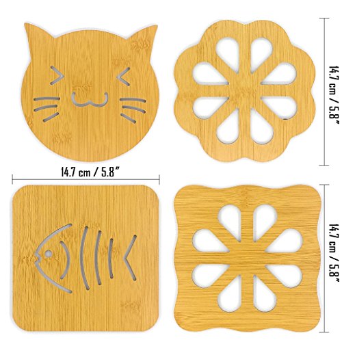 Fits any kitchen and home decor. Protect your dining table, counter-tops, tabletops or any heat sensitive kitchen surfaces from heat damage. Heat-resistant pot pads, durable and sturdy, great accessory for your bar, dining table, coffee tea lounges, office. Cute, stylish and functional hot pot holder pads and coasters, add vibrant life to any kitchen or dining room.