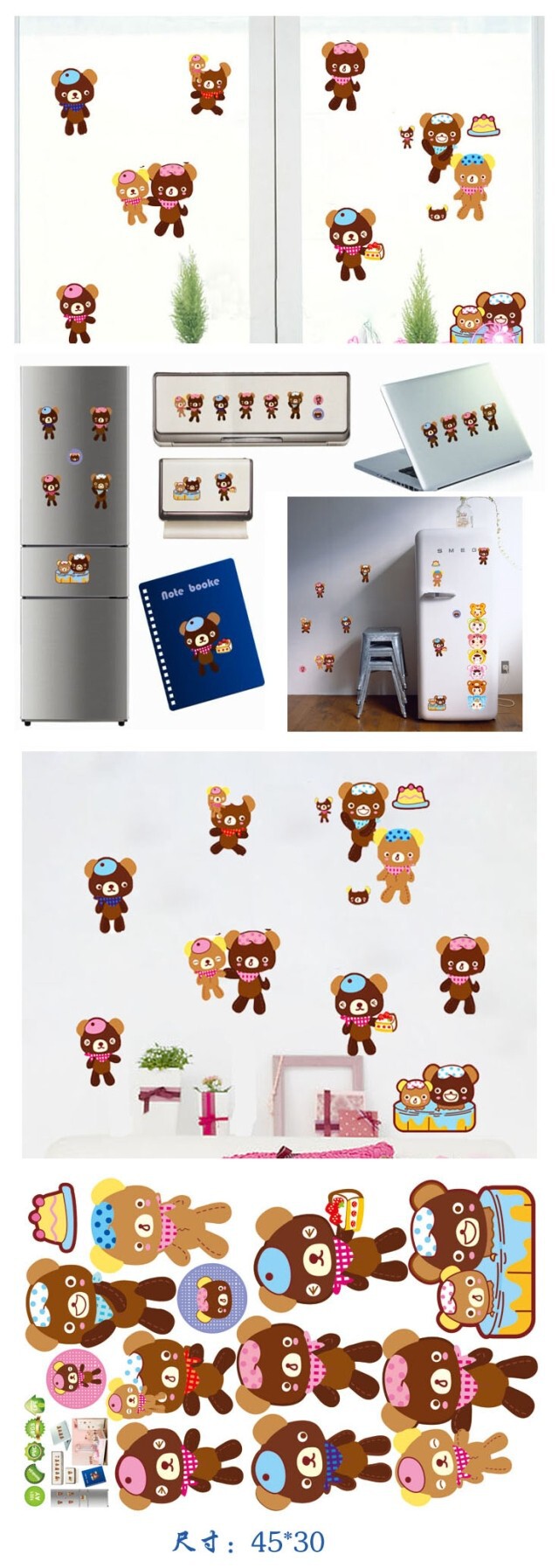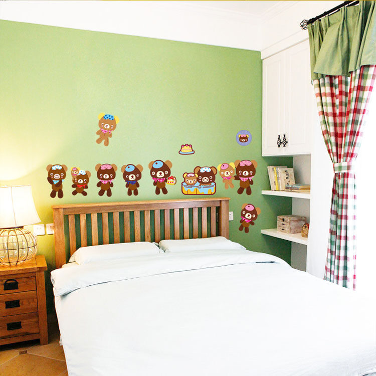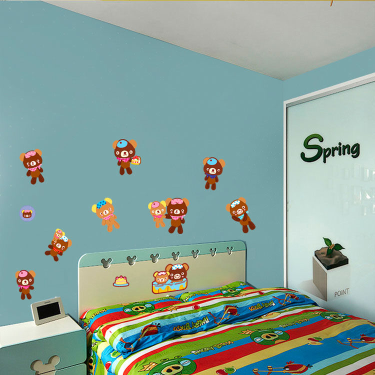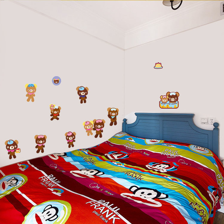 儿童房幼儿园卡通墙贴装饰贴画防水贴纸厨房冰箱贴可爱小熊随心贴