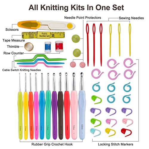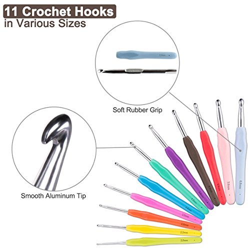Stay Organized and Crochet Anywhere - Contains ALL SIZED Hooks ( B/1 - L/11, 2.0 - 8.0mm) and knitting kits you need to work on almost anything, 11 soft rubber grip crochet hooks and 38 delicate accessories included