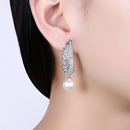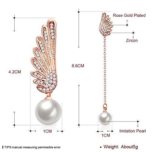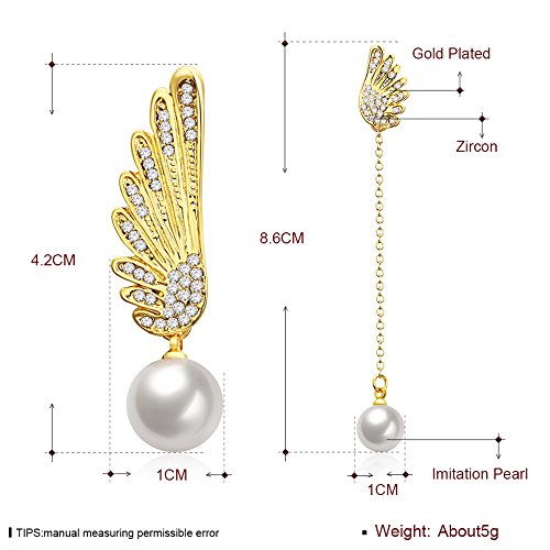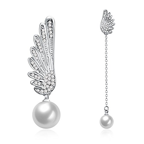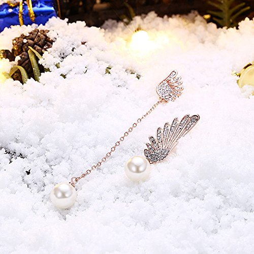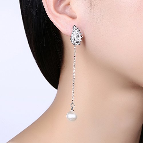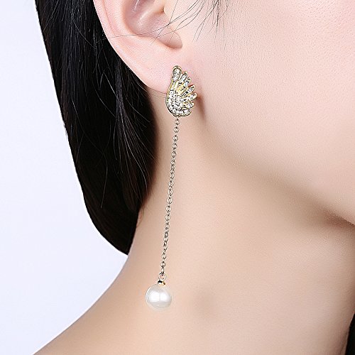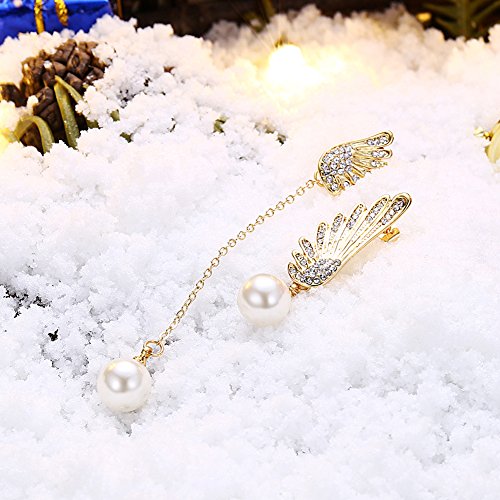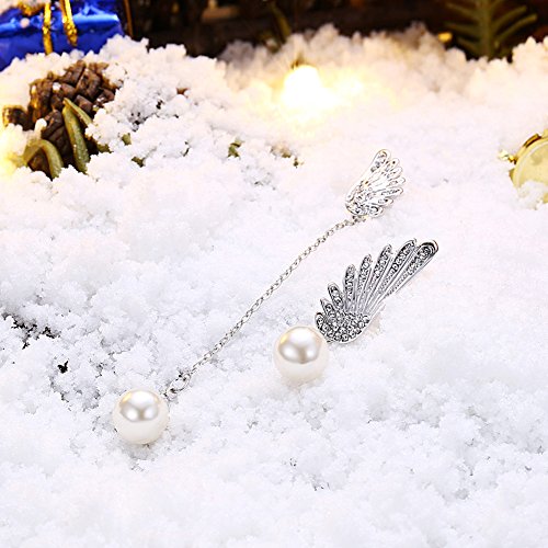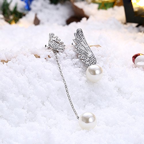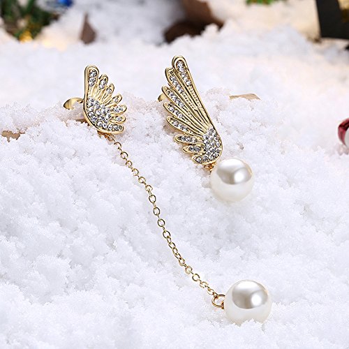 (LUREME)/Accessories/Belts Buckles/DIRECT FROM USA/Lureme Asymmetric Design Christmas Wing with Pearl Long Chain Earrings for Women (er005906)