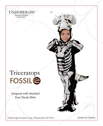 -. Brand : Underwraps -. Color : Multi -. Department : unisex-baby -. Feature : Features cracked bone 3D puffed printed jumpsuit with attached feet. / Complete your look with the included detailed plush hood and mitts. / Made from a lightweight baby blanket material. / Spacious enough to pull over warm clothes during cold weather. Hand Wash/Line Dry. Do not iron. / Available in Child's S,M,L,XL. please see size chart as reference. -. Label : Underwraps -. Manufacturer : Underwraps -. MPN : UN26249 -. PackageQuantity : 1 -. PartNumber : UN26249 -. ProductGroup : Apparel -. ProductTypeName : BABY_COSTUME -. Publisher : Underwraps -. Studio : Underwraps -. Title : Children's Triceratops Skeleton Costume - Fossil
