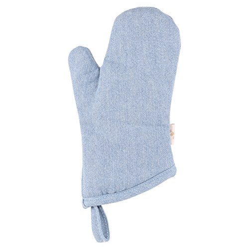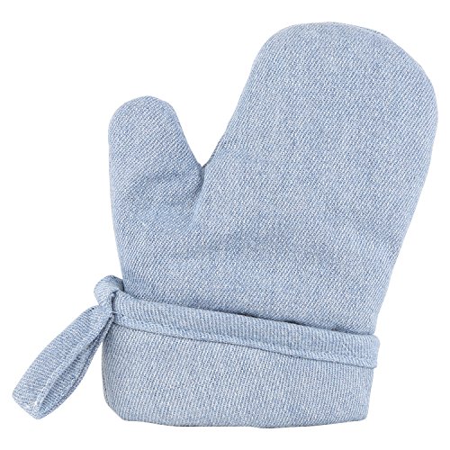Neoviva Denim Quilting Heat Resistant Child Oven Mitts for Play Kitchen, Set of 2, Solid Skyway Blue