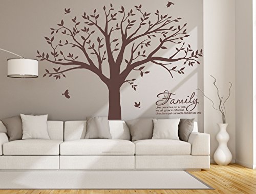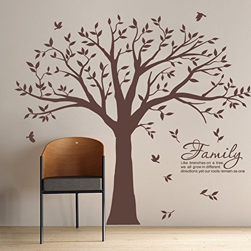 -. Feature : Decorate Baby and Kids Nursery, interior walls or windows of home, bathroom, office, dorm, or store / Do not stick to any powder coated wall, irregular surface, oil and dust surface, painted surfaces with Teflon, stain guard or VOC paints that have been used / Package included:1* Vinyl Decal, 1*transfer film , 1* Application. / Giant Family Tree Wall Decal,Display your photos on your wall Family Tree Style! / Finished Size is about 83"h x 83w"(The photo Frame not included)