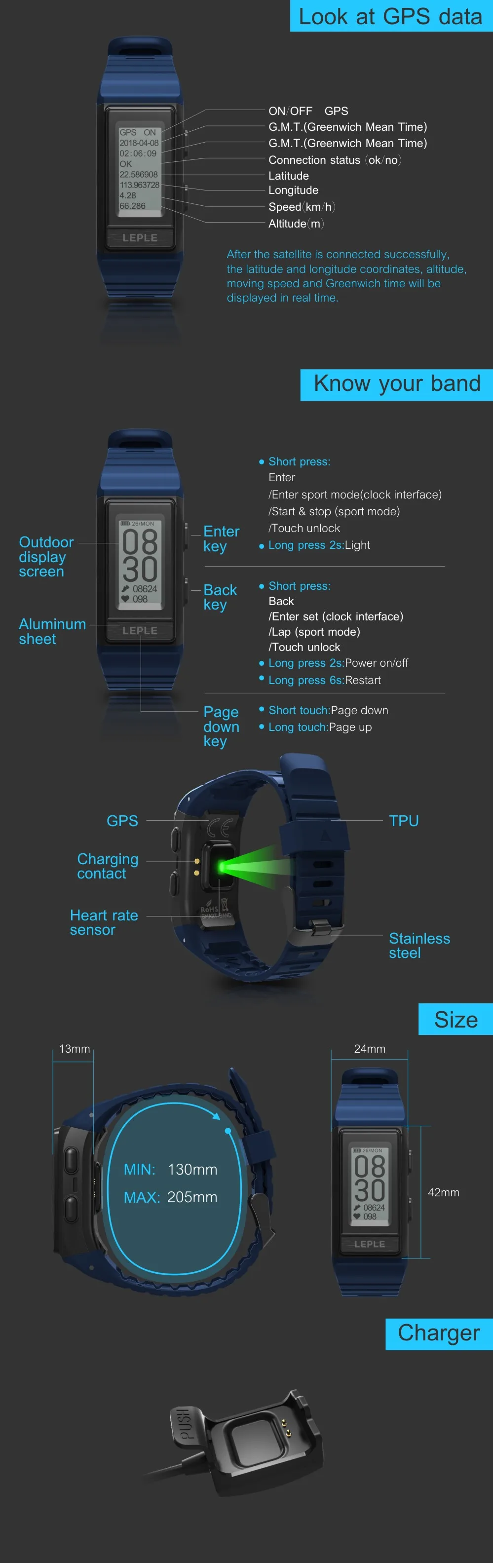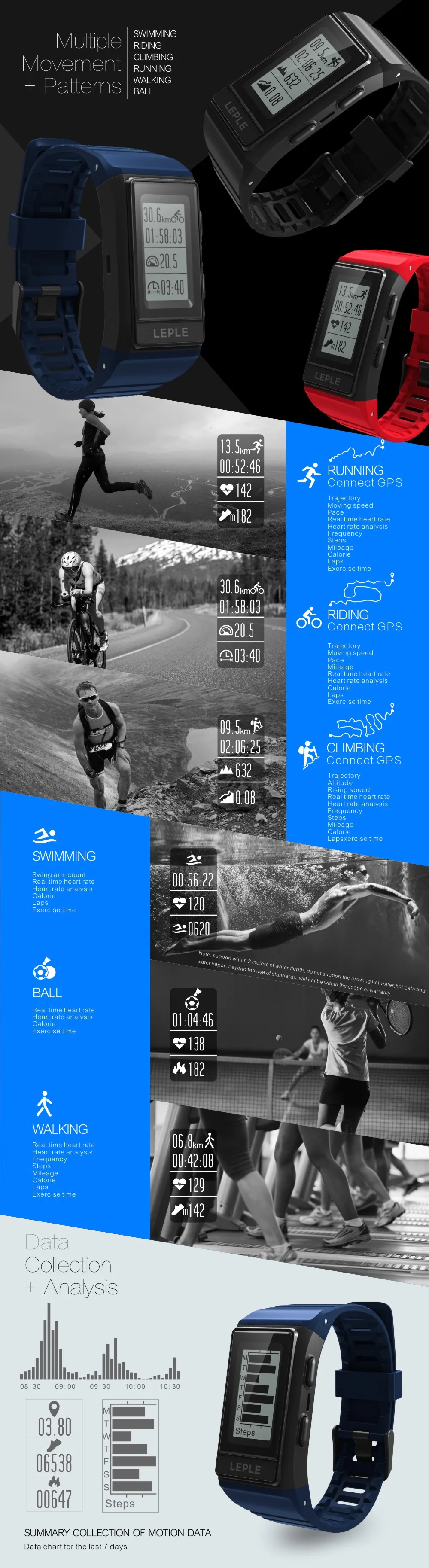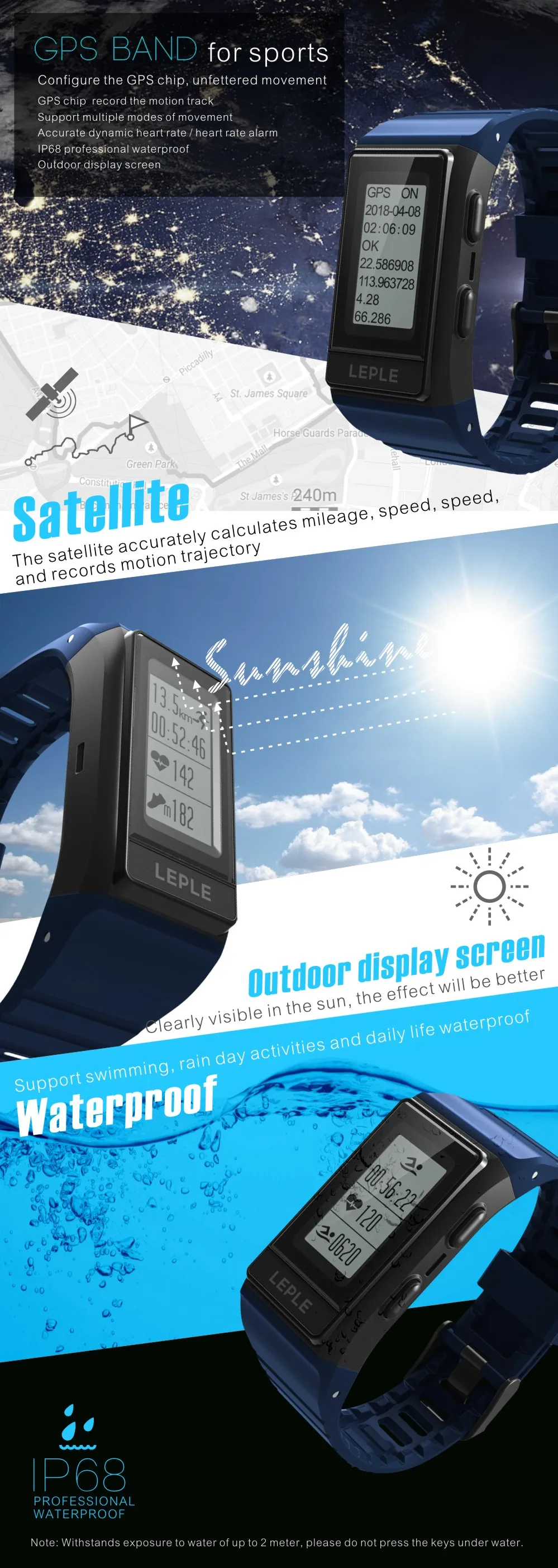 - Independent GPS, supports tracking trajectory, speed, pace, mileage, frequency, laps. No need to rely on mobile phone.