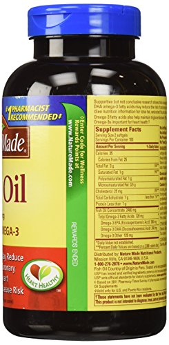 -. Binding : Health and Beauty -. Brand : Nature Made -. IsAdultProduct : 0 -. Label : Nature Made -. Manufacturer : Nature Made -. MPN : 1328 -. PartNumber : 1328 -. ProductGroup : Health and Beauty -. ProductTypeName : HEALTH_PERSONAL_CARE -. Publisher : Nature Made -. Studio : Nature Made -. Title : Nature Made Fish Oil Omega-3, 1200mg, 100 Softgels