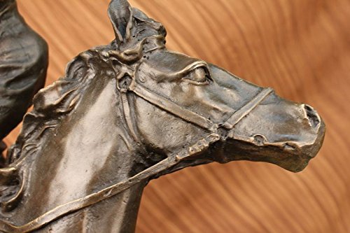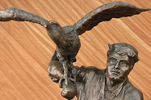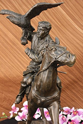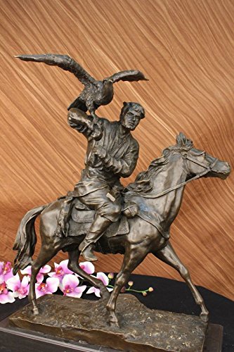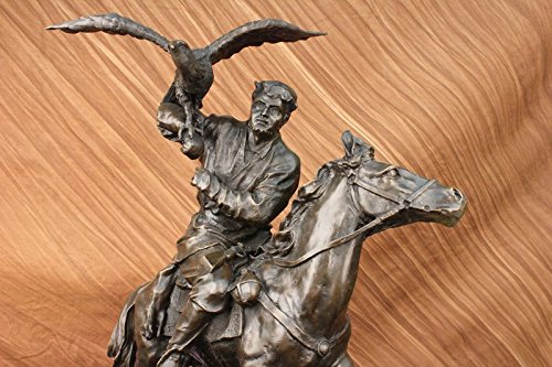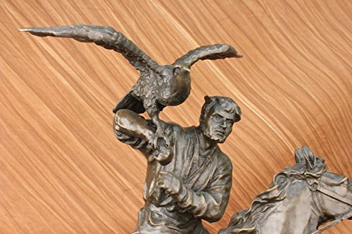 - Feature : Bronze Statue Man Horse Eagle Hunting Hunter Sculpture Figure Art Deco / A Man Trotting Through The Fields On His Faithful Horse Has Attached His Quarry To The Side Of His Saddle On His Horse And He Looks Around For More Game To Hunt. He Looks Like He Lives In The Wild Roaming Where Ever His Horse Takes Him. He Has A Scruffy F... / Real Cast Bronze. / 21"x21". 50 LBS / Customer service phone numbers: U.S.A. (+1.516.880.9959) U.K. (+44.20.37697845) France: (+33.9.75121702) Australia (+61.2.90984493)