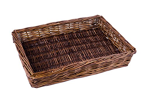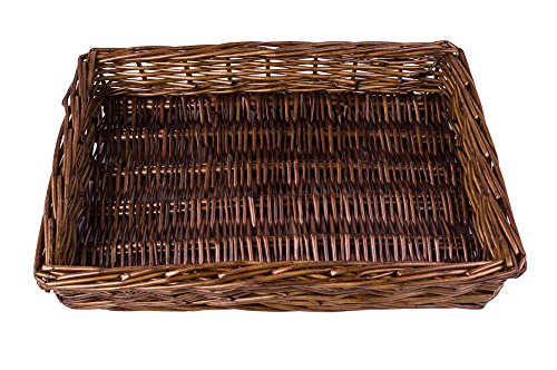 - Natural lightweight willow tray organizer in dark caramel brown doubles as a snack basket