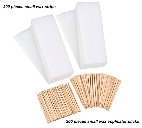 Hotop 200 Pieces Non Woven Wax Strips Mini Wax Strip Hair Removal Kit and 200 Pieces Wax Applicator Sticks