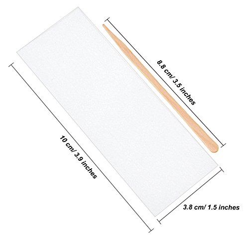 - Dimension: size of wax strip is approx. 3.8 x 10 cm/ 1.5 x 3.9 inches (LW), the wax applicator sticks measure approx. 8.8 cm/ 3.5 inches in length