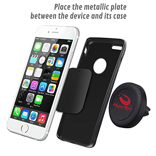 Car Mount Air Vent - This Magnetic Phone Holder Mounts on almost any vehicle that has horizontal air vents. It allows you to rotate the phone and still be secure by the magnetic force - El sostenedor del teléfono magnético se monta en casi cualquier vehículo que tiene respiraderos de aire horizontales. Le permite girar el teléfono y seguir siendo seguro por la fuerza magnética