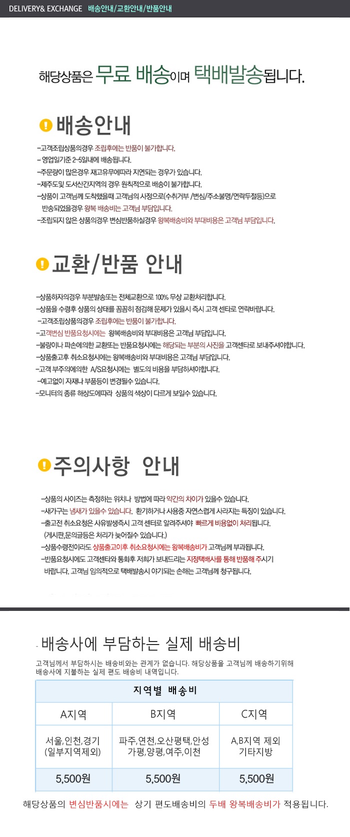- 상품의 교환/반품/보증 조건 및 품질보증 기준