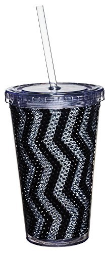Gifted Living 2AC0222C Zig Zag Bling Chevron Pattern Insulated Travel Cup, Black