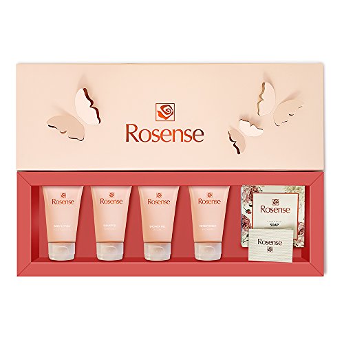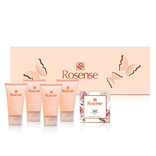 Bath / Spa Set with 5 popular travel size products: 1.23 oz Body Lotion, Shampoo, Conditioner, Shower Gel and 1 oz Bath Soap