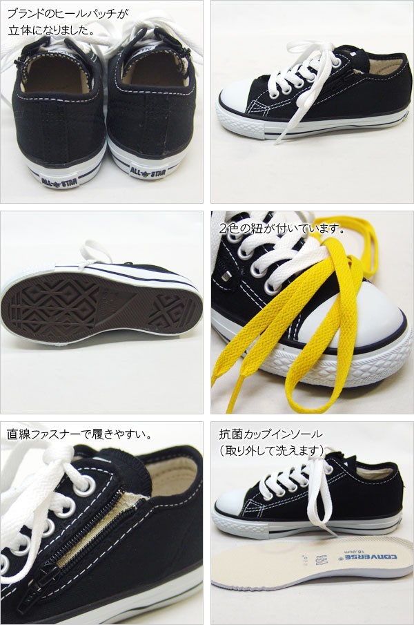 コメント チャイルドオールスターのリニューアルモデル。抗菌カップインソール、立体成型ヒールパッチ、直線ファスナーに改良することで、履き易さ、履かせ易さをアップデート。