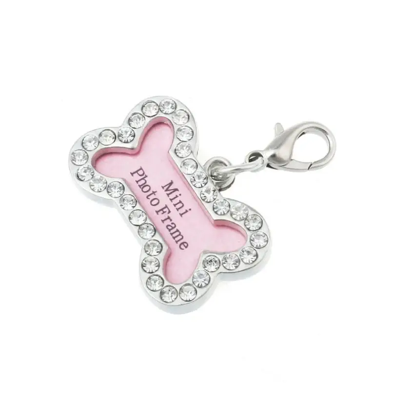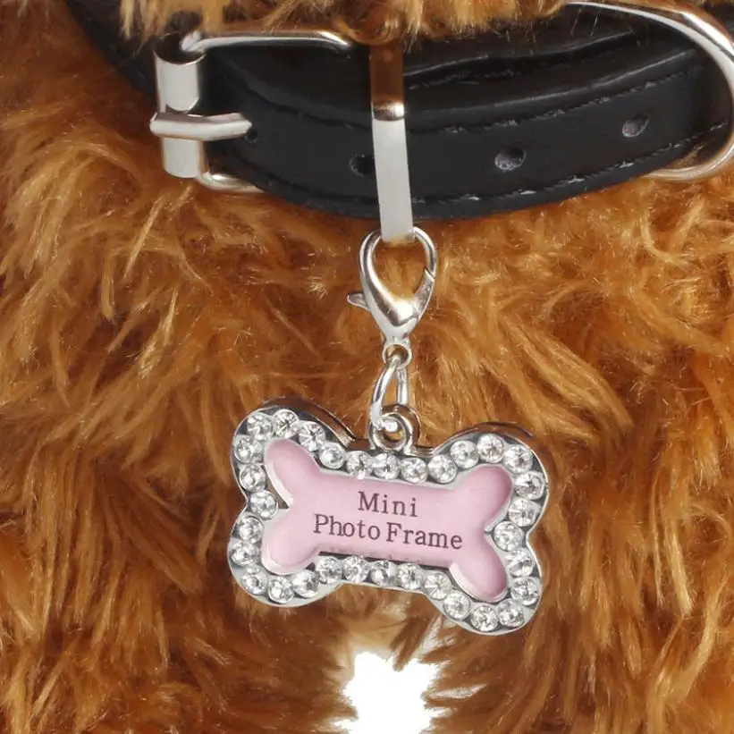 Pet Jewelry Drop Shipping:1PC Fashion Bone Shape Rhinestone Identity Card Heart Pendant