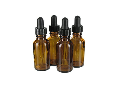 1 Oz (30 ml) Amber Glass Bottles Boston round with glass eye dropper 4 pack + Include LABELS for your marking convenience
