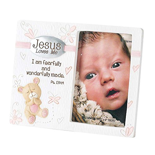 -. Title : Dicksons Baby Bear Jesus Loves Me Photo Frame for Girl, White
