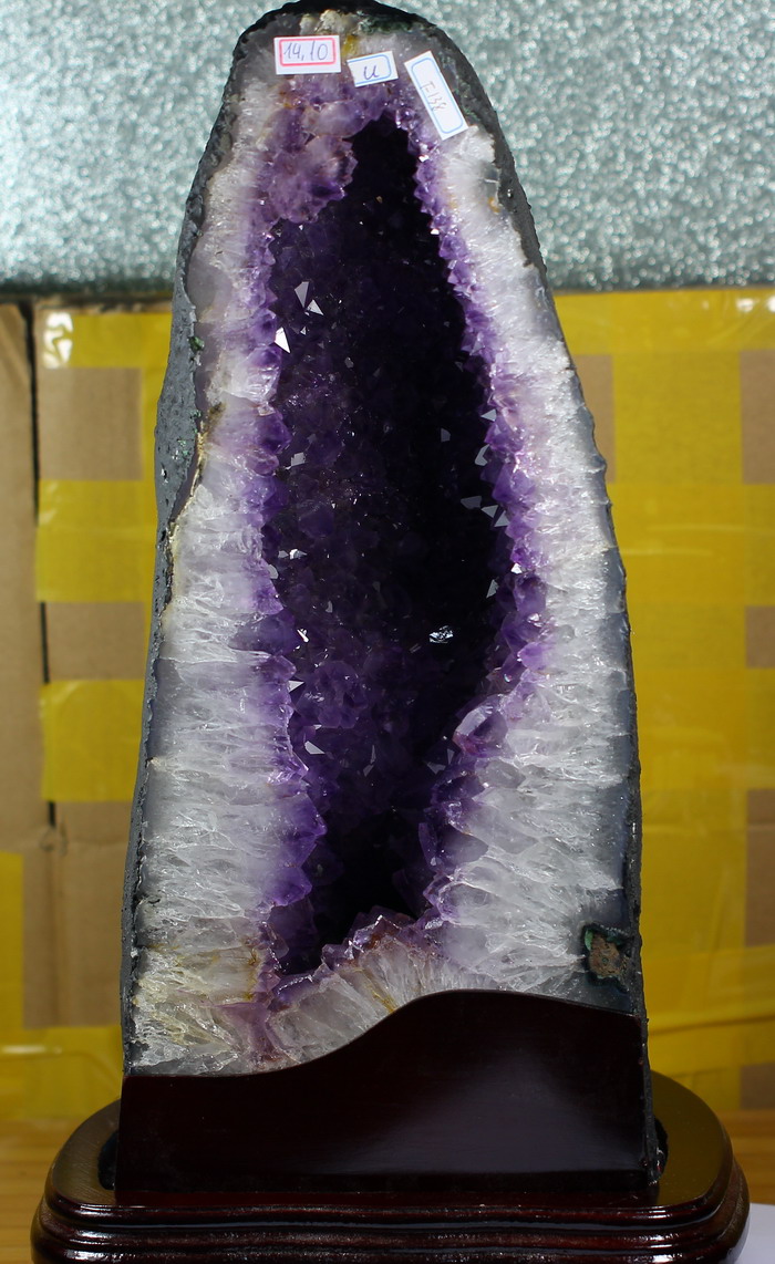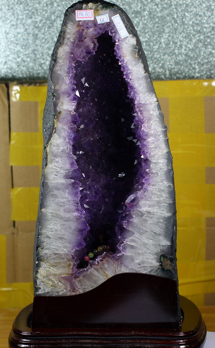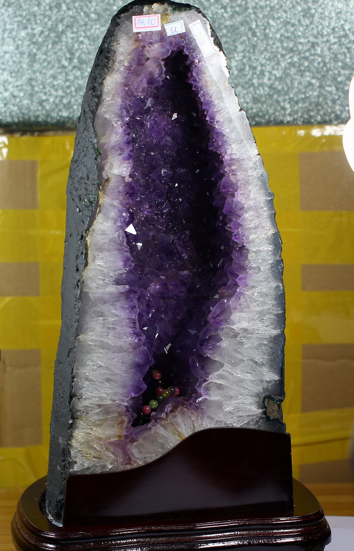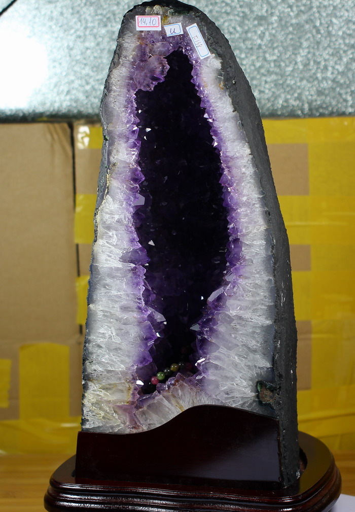 此款属于中款紫晶洞,口大洞深,非常招财,很适合家里店里摆在正财位,此款颗粒很紫很干净,上等的紫水晶。