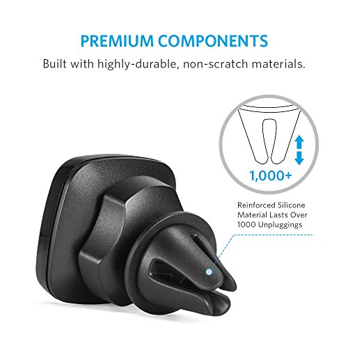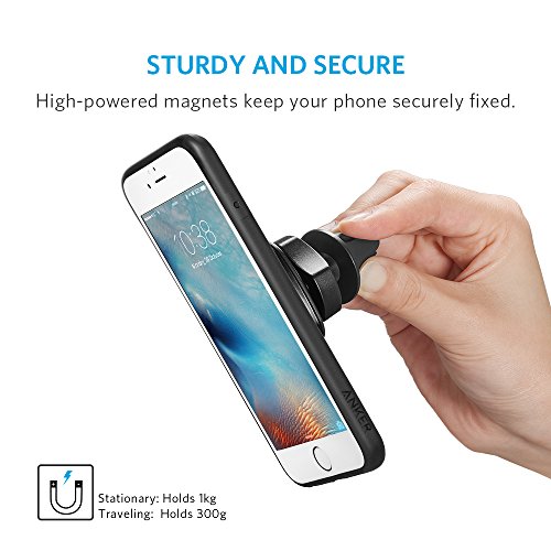 -. Feature : Sturdy and Secure: Four powerful N42-grade neodymium magnets built into the mount head ensure your phone stays securely attached throughout your drive. / Versatile Viewing: Highly-flexible ball-joint rotation provides infinite viewing angles. Position your phone at the perfect angle to enjoy a more relaxed and safer drive. / Premium Design: Two mount claw alignments offer different fits for air vents of almost any size. The rubberized exterior increases grip and keeps your car's air vent scratch-free. / Easy Fit for Almost Any Vent: Hassle-free mounting is managed in seconds, with no tools required. / What You Get: Anker Air Vent Magnetic Car Mount, welcome guide, our worry-free 18-month warranty and friendly customer service.