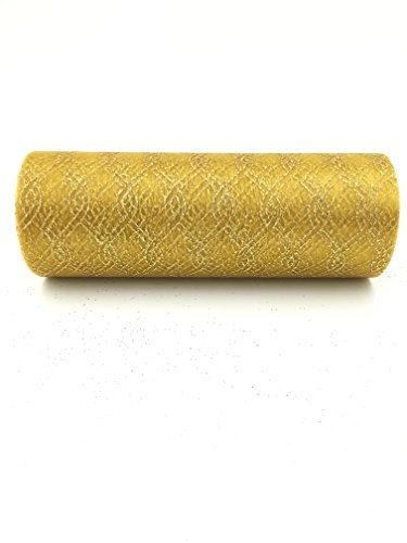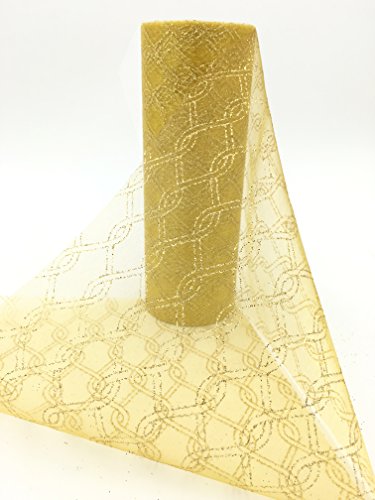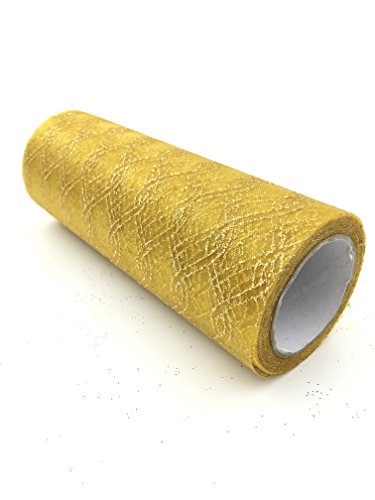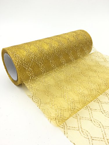 ASIBT 6 Inch x 10 Yards Vintage Chain shape Lace Roll Netting Fabric Tulle Roll For Tutu Skirt Table Runner Chair Sash DIY Wedding Party Art Decor (B09 Gold)