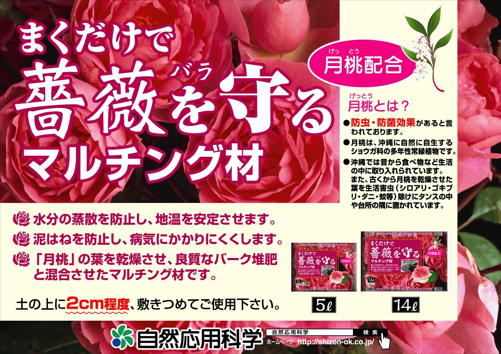 ● Use this product around 2 cm on the soil, spreading it