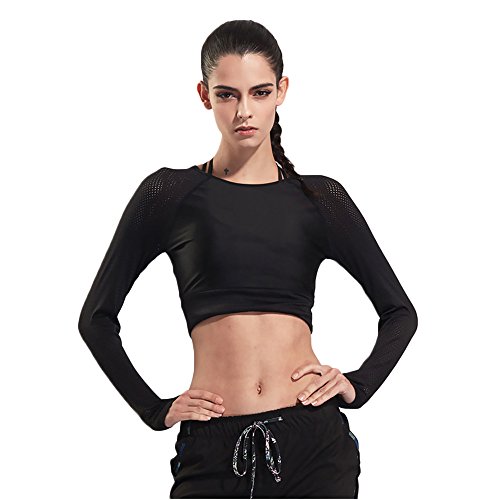 -. Feature : Made of 90% polyester and 10% polyurethane, breathable, elastic, soft and smooth, Sweat absorption and flash drying / Long sleeve, bare midriff style with thumb holes, quick-dry, compression, and comfortable / This activewear is suitable for running, yoga, workout, training, gym and other sports / The items in the packing and shipping process may produce some folds,the wearing effect will be better after ironing / Please refer to the size measurement below before ordering.If you like to wear looser, we sest you to choose the bigger size.The strain range 10-15cm.Please allow 1-3 cm differs due to manual measurement, thanks!