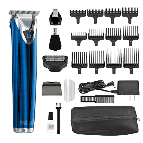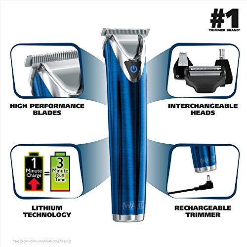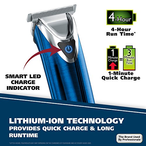 Wahl Clipper Stainless Steel Lithium Ion Plus Beard Trimmer Kit, Blue, No.9864B