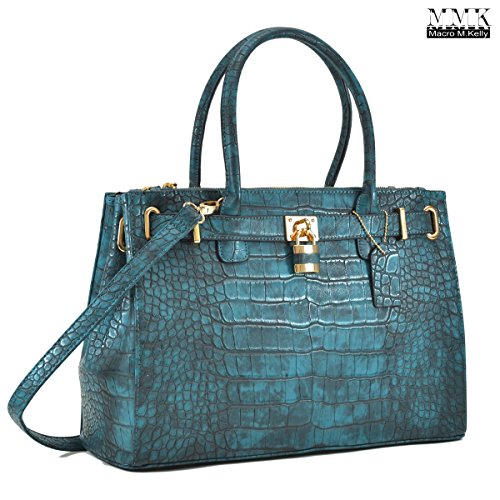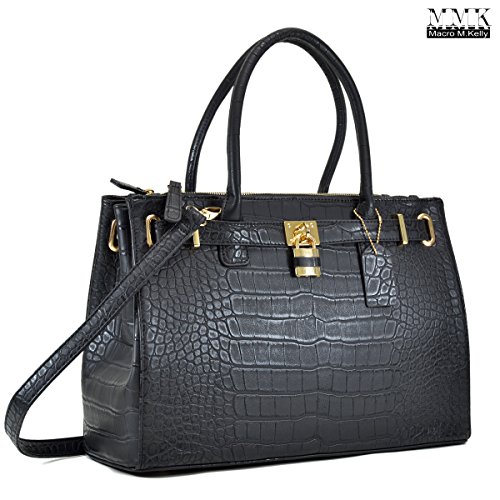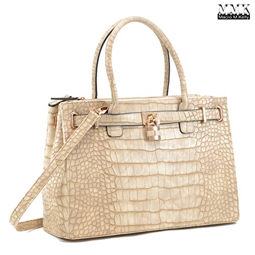 Luxury Jascia Padlock Double zipper compartment Satchel handbag (0326)~100% High quality Faux Croco Leather~Gold-Tone Zippers, Rings, Padlock, Key and Studs~Approx. Size: 15.7"W x 10.6"H x 5.9"D~Handle Drop Length: 6.5''~Shoulder Strap Length: 48''~You can carry to anywhere on all year season. All ages of the working women. Whether you are meeting up with a client or hitting up happy hour with your friends after work~Pair this fierce handbag with any look from jeans and boots to dresses and sandals. It's this year's dream bag come to life!